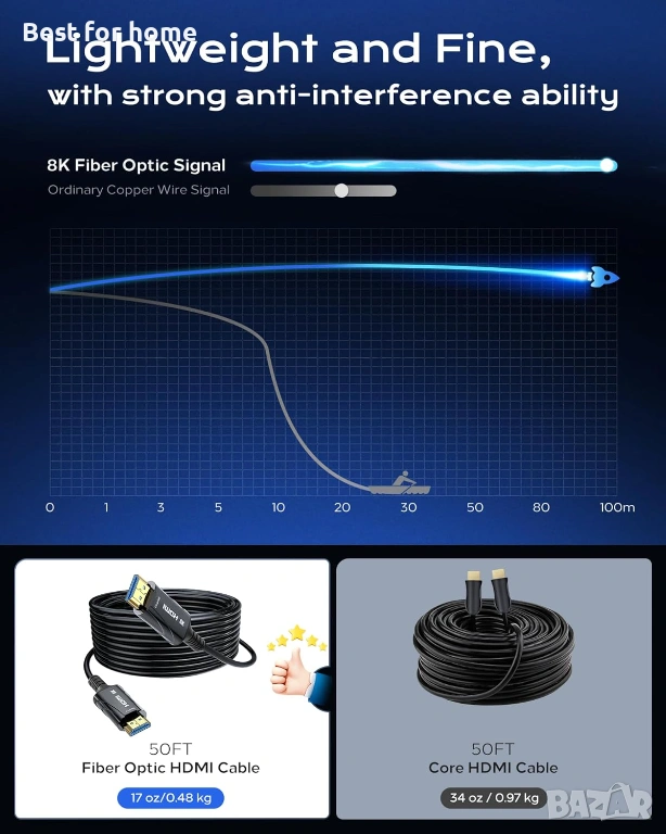 Оптичен HDMI кабел с дължина 65 фута/20 метра