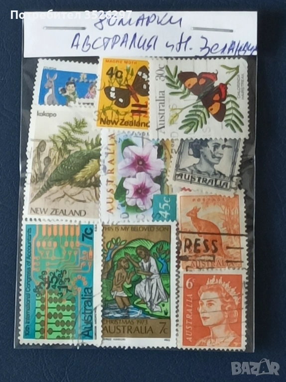 Колекция от 80 пощенски марки от Австралия и Нова Зеландия. Марките са с печати, и са тези от снимките за 6 евро.