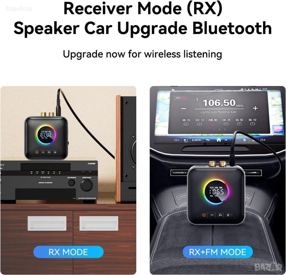 Приемник (RX): Превърнете старата си уредба, колони или усилвател в модерни Bluetooth системи и пускайте музика директно от телефона си.