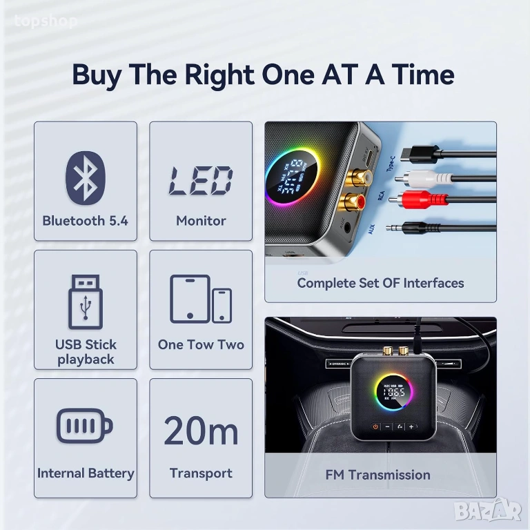 Предавател (TX): Свържете го към телевизор или компютър, за да изпращате звук към вашите Bluetooth слушалки или колони (идеално за гледане на филми вечер).