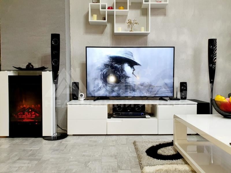 Апартаментът е след пълен основен ремонт, при който всички елементи са демонтирани до тухла, а ВиК и електрическата инсталация са изградени изцяло наново от уличната мрежа до всяка крайна точка в жилището.