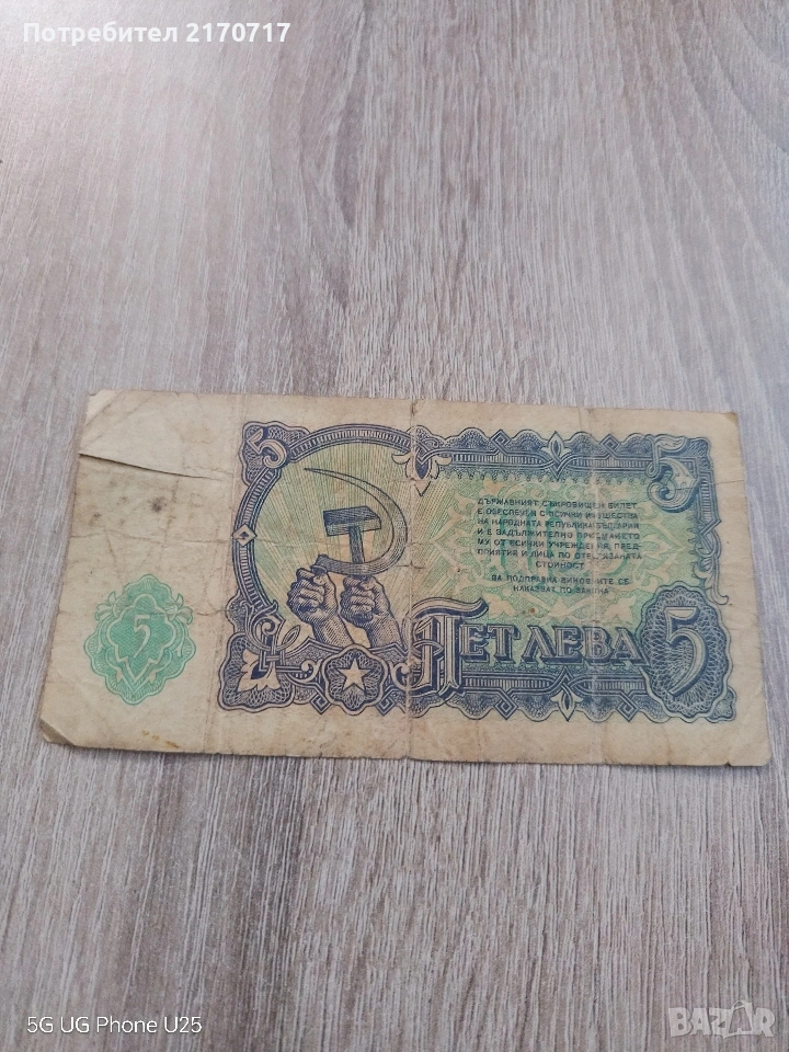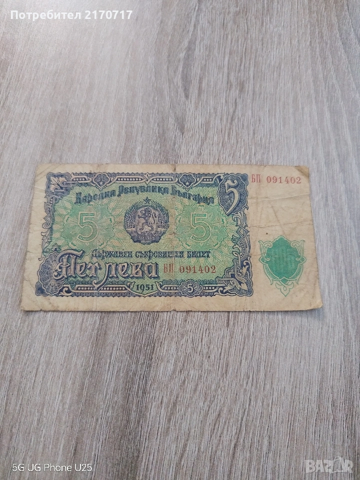 Продавам , разменям банкнота 5 лева 1951 година → Обява 53390681