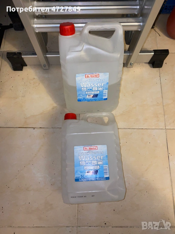 Продавам две туби с дестилирана вода, всяка с обем от 5 литра.