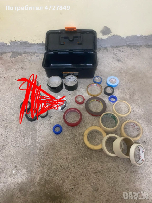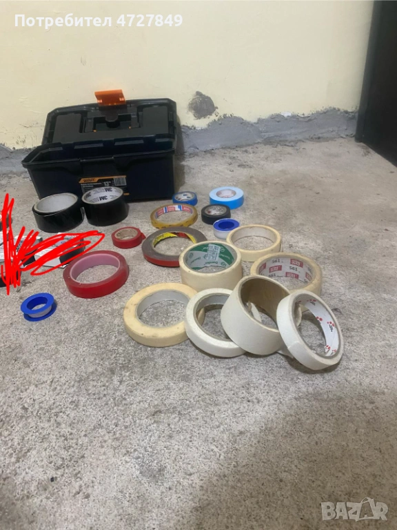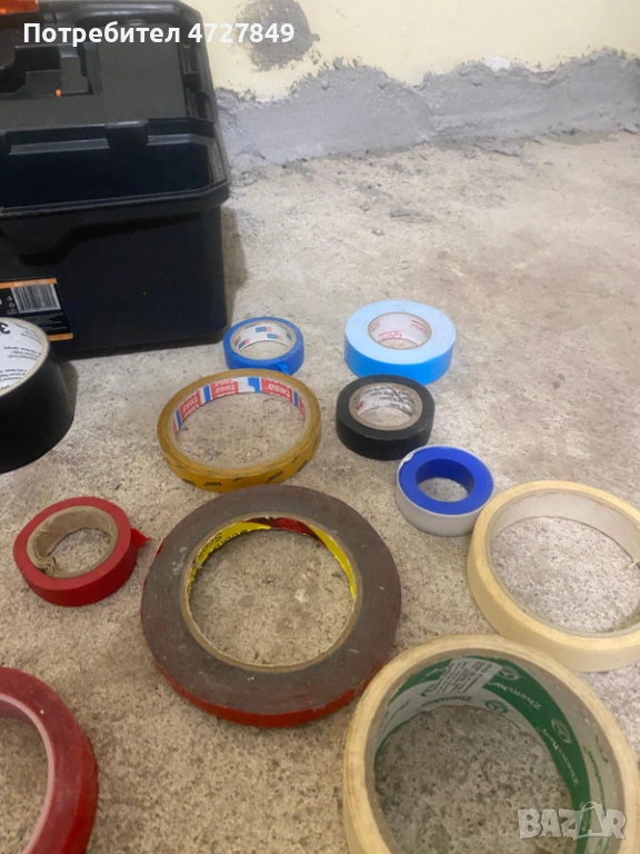 Продавам комплект от различни видове залепващи ленти. Всички ролки са започнати, но разполагат с голямо количество оставаща лента.