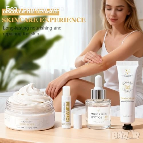 Грижа за кожа: скраб за тяло, хидратиращо масло за тяло, крем за ръце, балсам за устни