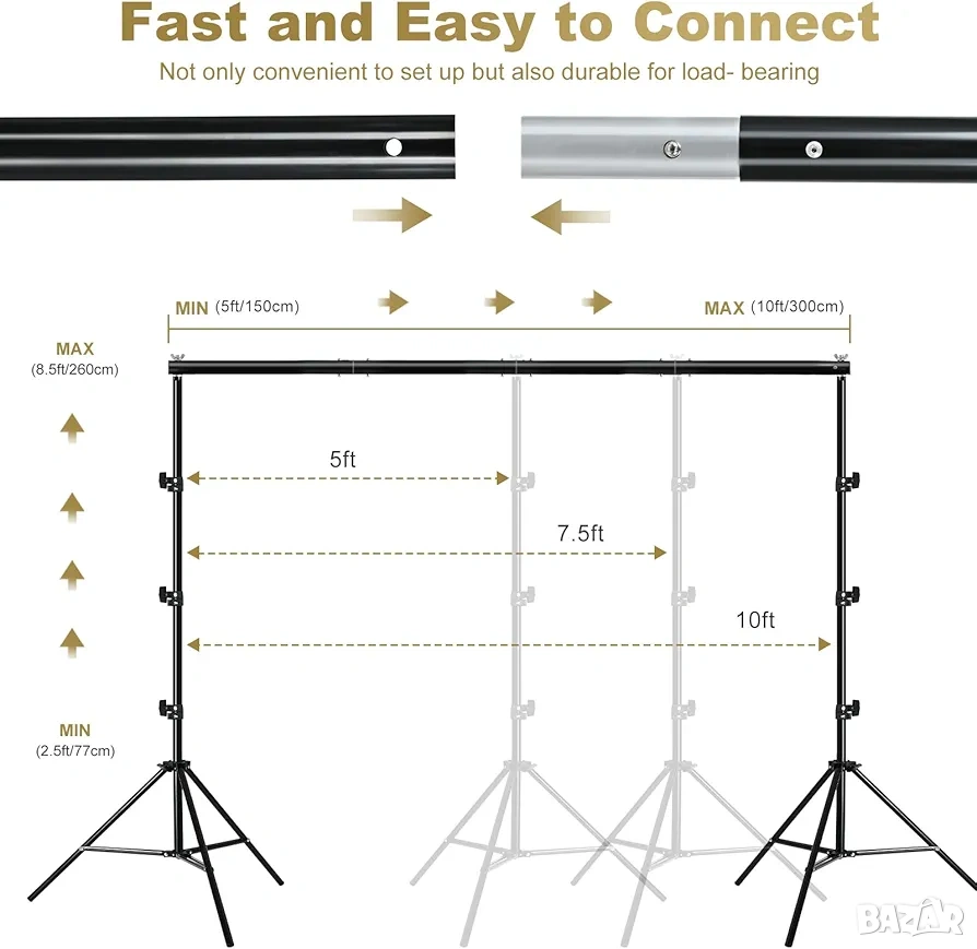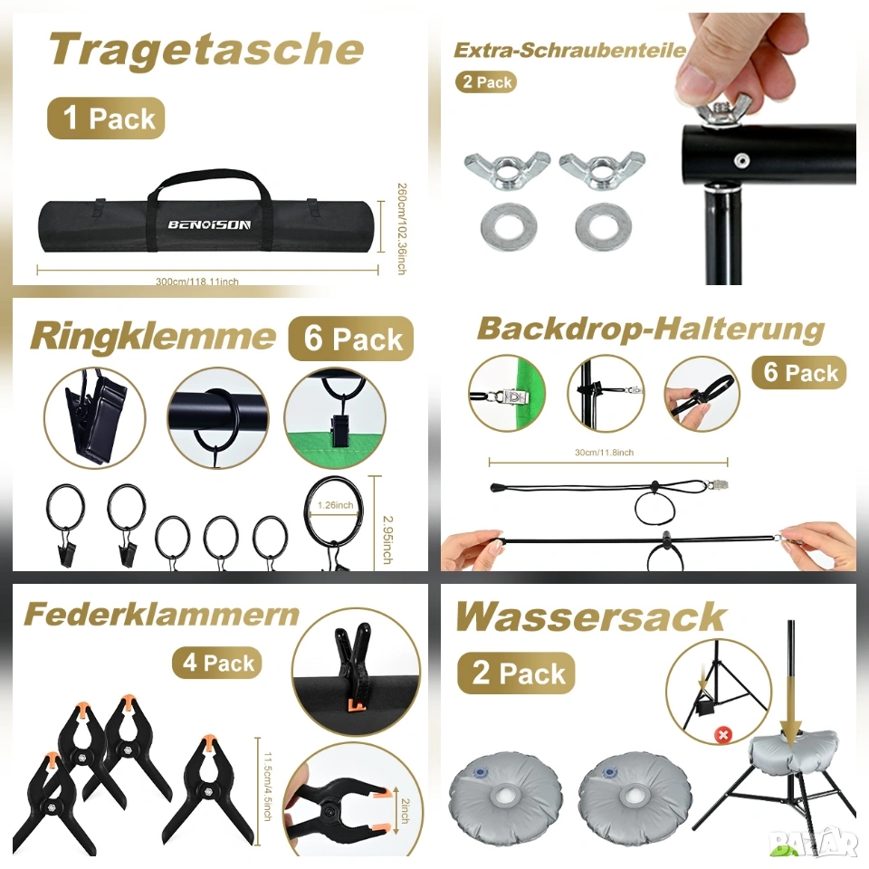 стойка за фон, фото студио, BENOISON, фонова система, статив за снимки, зелен екран, фотографско оборудване, 2.6x3m, стойка за декорация
