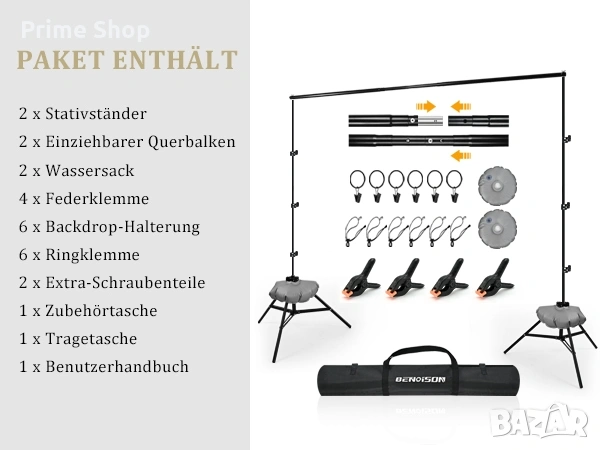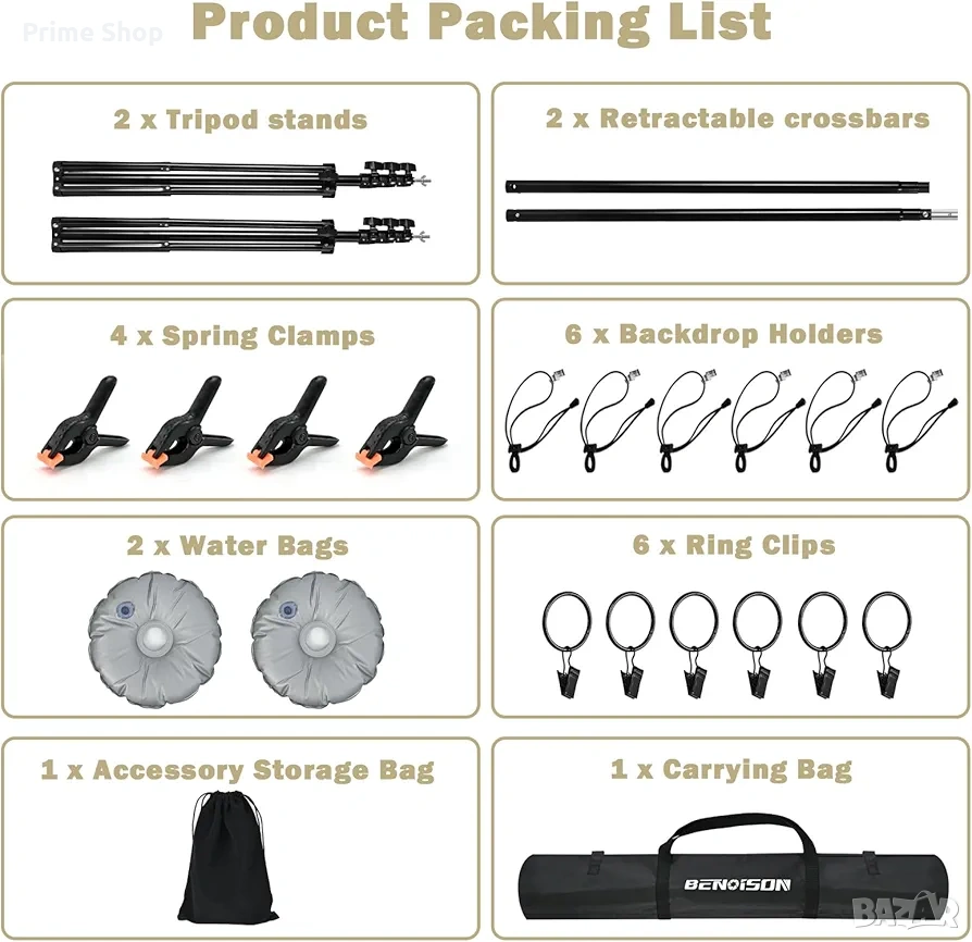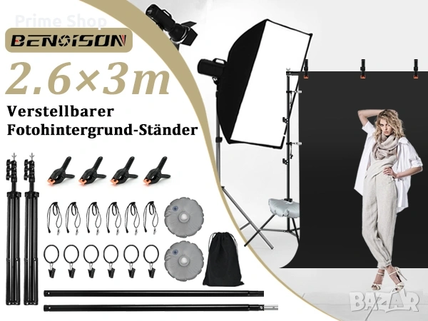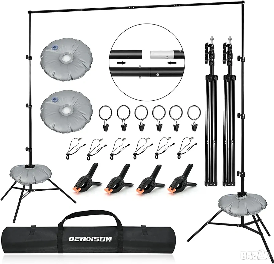 Професионална стойка за фото фон BENOISON 2.6x3м с аксесоари