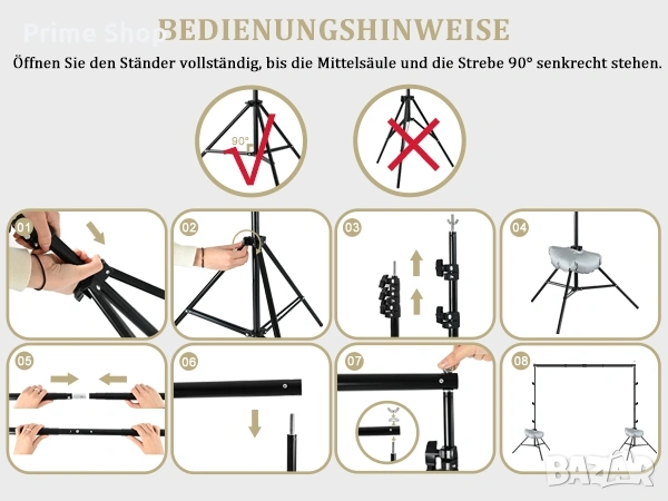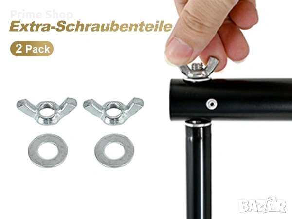 * Пълен набор от фиксиращи елементи: Системата включва разнообразие от щипки и държачи (пружинни скоби, пръстени и еластични държачи), които гарантират идеално изпъване на фона без гънки.