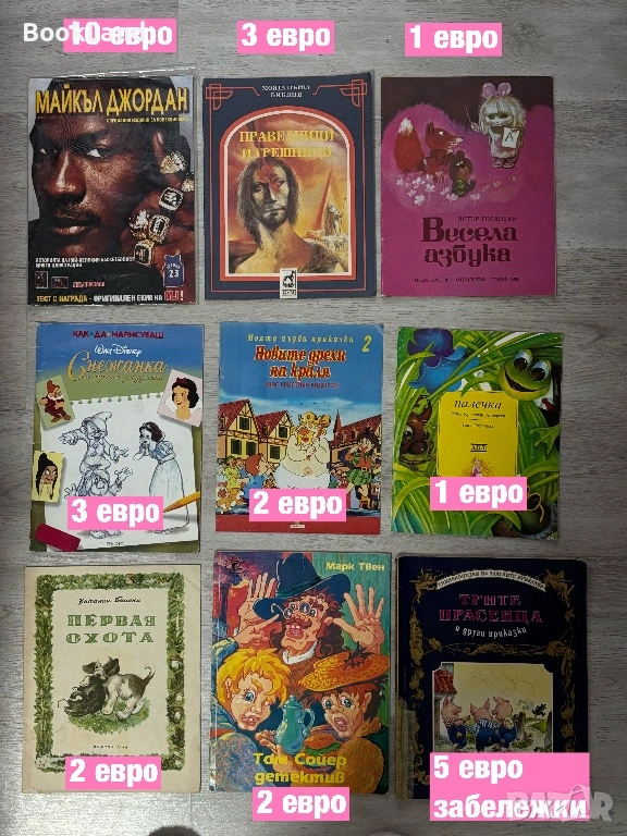 Огромна колекция и РАЗПРОДАЖБА на детски книги. Цените започват от 1-2 евро. На всяка снимка се виждат добре цените за отделните заглавия.