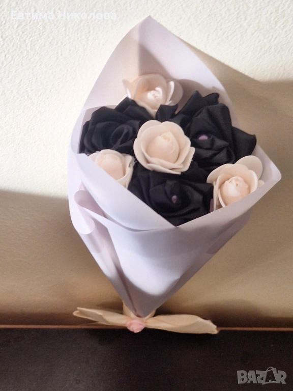 Сатенени рози , снимка 1 - Изкуствени цветя - 53391786 Сатенени рози , снимка 2 - Изкуствени цветя - 53391786 1/2