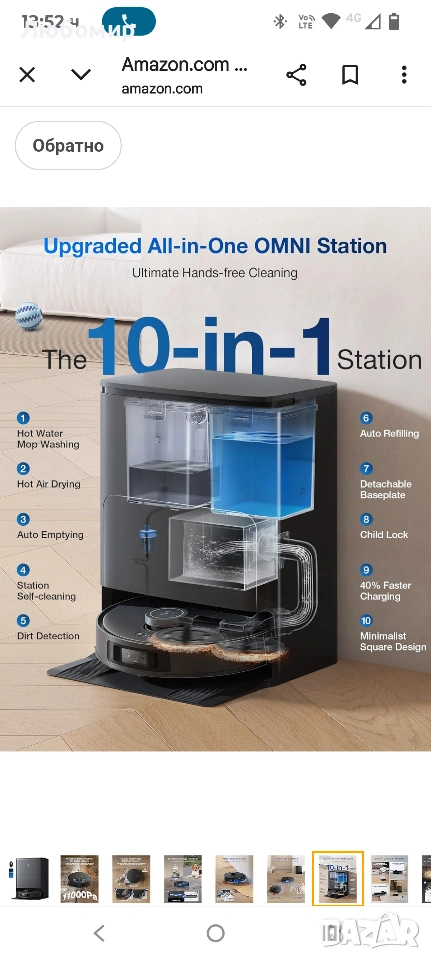 Многофункционална OMNI станция - Многофункционалната OMNI станция поддържа измиване с гореща вода до 158℉, самоизпразване, автоматично пълнене на вода и сушене с горещ въздух. Тази многофункционална станция подготвя вашия DEEBOT T30S PRO за всяко предизвикателство при почистване, въплъщавайки същността на удобството и готовността за употреба.