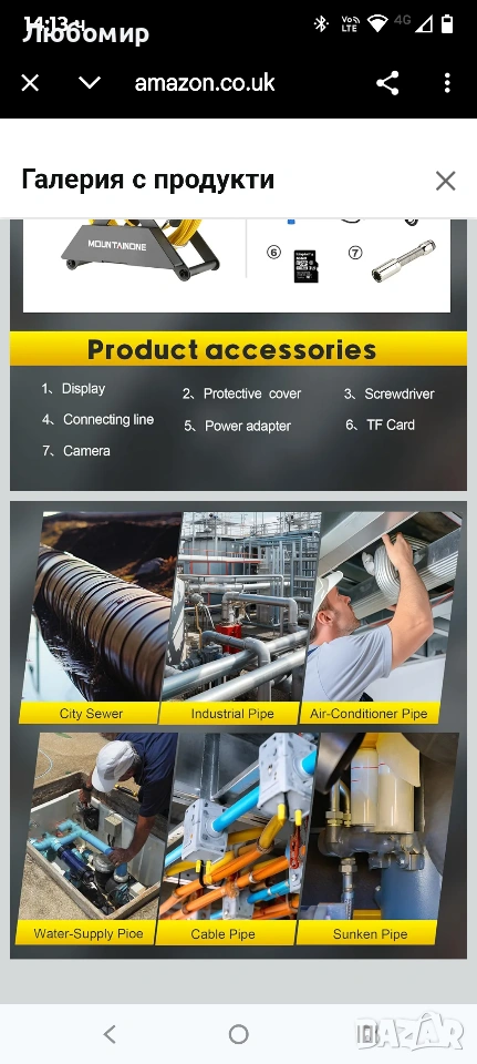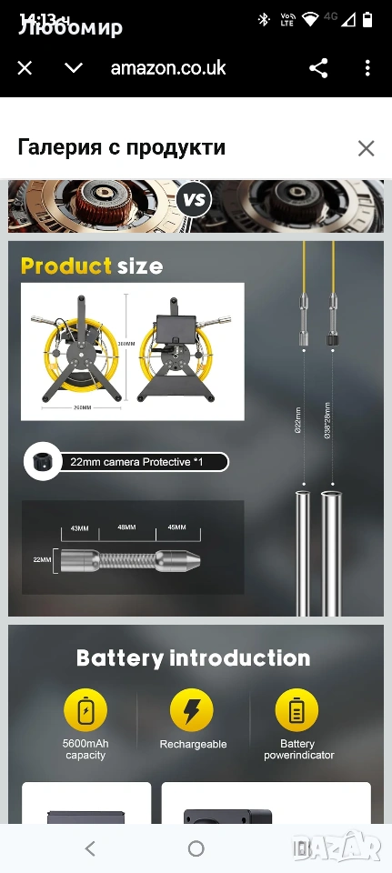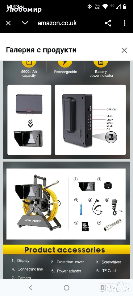 【Батерия 5600mAh】- Камера за канализационни тръби с 5V 5600mAh батерия за 6 часа. Комплект камера тип "змия" за инспекция на тръби, канализация и стени с включена 12V 5600mAh литиева батерия, поддържа приблизително 6 часа непрекъсната употреба.