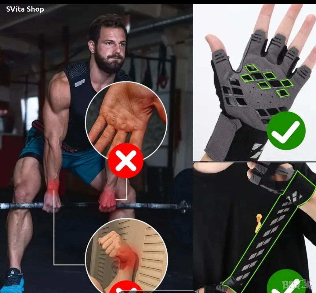 Професионални фитнес ръкавици – Максимален захват и защита Вдигни летвата и тренирай без ограничения! Тези мъжки ръкавици за вдигане на тежести са проектирани за сериозни атлети, които не правят компромис със сигурността и комфорта по време на интензивни сесии. Защо да изберете този модел? Пълна защита на дланите: Специално подсилените зони с висок интензитет предпазват от мазоли и наранявания, докато дизайнът без пръсти осигурява естествено усещане и прецизност при захвата. Интегрирана опора за китките: Дългите накитници осигуряват допълнителна стабилност, намалявайки риска от контузии при вдигане на големи тежести. Дишаща материя: Висококачествените материали позволяват на кожата да диша, предотвратявайки изпотяването и хлъзгането на ръката вътре в ръкавицата. Противоплъзгаща технология: Специалната повърхност на дланта гарантира "железен" захват върху лоста, дъмбела или пудовката. Характеристики: Цвят: Класическо черно с агресивни детайли, перфектно допълващи твоята фитнес екипировка. Размери: Налични в S, M, L и XL (Размери M и L са най-търсените за перфектно пасване). Приложение: Идеални за бодибилдинг, кросфит, силов триатлон и обща фитнес подготовка. Мнението на SVita Shop: Тези ръкавици не са просто аксесоар – те са инструмент за постигане на нови лични рекорди. Създадени да издържат на "Rage" тренировките, които изискват 100% отдаденост.