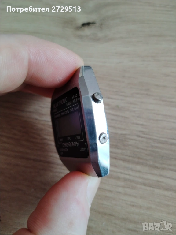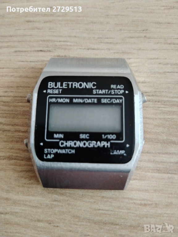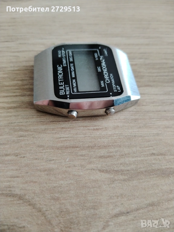 Български колекционерски часовник. Добре запазена вещ, пощадена е от времето и донякъде от човешката глупост. Часовника работи - изпробван е, бутоните също са в изправност. Липсва задния капак и пластинката за контакт на батерията, лесно заменяеми са!
