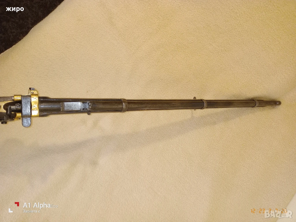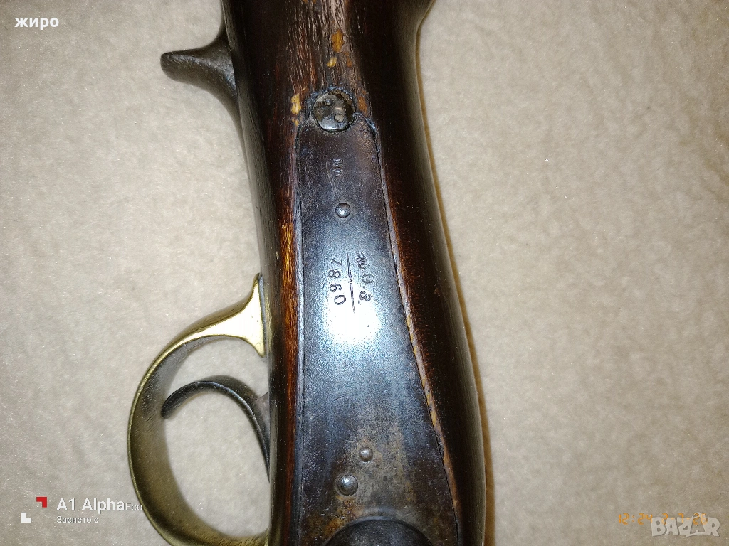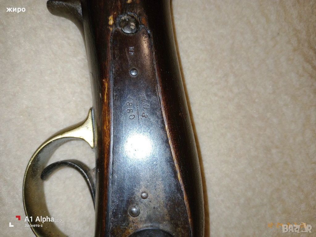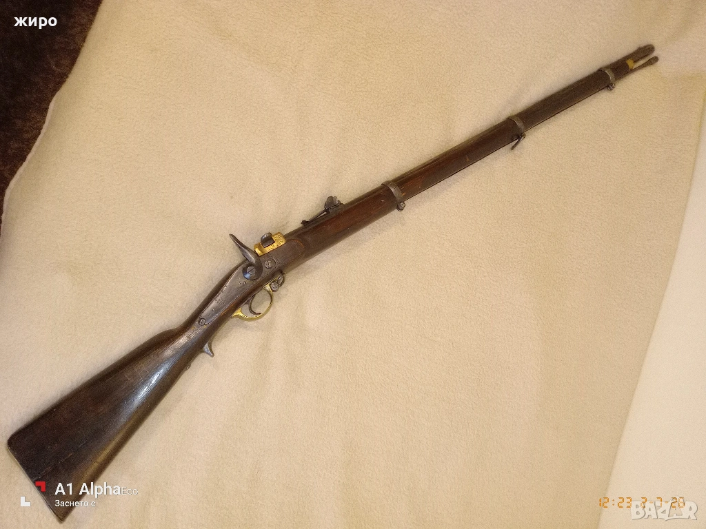 Силвестр Крнка, който през есента на 1867 г. пристигнал в Петербург и донесъл от Виена свой образец пушка Krnka и калибър 15,24 мм (6 линии).Пушката „Крнка”, обр. 1869 г., за стрелковите части имала обща дължина 1840 мм с поставен щик и 1340 мм без поставен щик. Дължина на цевта била 900 мм. Масата на пушката без щик била 4,5 кг, а с поставен щик достигала до 4,9 кг. Цевта се закрепвала към дървената ложа с помощта на 3 различни по големина скоби, отворени в долната страна. Мерникът бил с дълга планка, разграфен за стрелба на разстояния от 200 до 1200 крачки през 200 крачки. Пушката „КРНКА”, обр. 1860 г., се характеризира с обща дължина 133 см. За въоръжение в пехотата на Българската войска са предадени пушки „Крнка”, а за конниците – скъсена пушка (карабина) „Крнка”.Днес разновидностите на „Крнка” са особено привлекателни за оръжейните любители и колекционери. Образецът КРНКА от 1860 г. е с калибър 15,24. Представената карабина е в перфектно състояние! Карабината е на свободен режим преди 1900 г. и може да се използва за колекции и да участва във въстановките на "Традиция".Историческата справка за създаването на карабината КРНКА всеки може да прочете в интернет и по тази причина не обременявам анотацията в тази обява! При желание мога да предоставя още подробни снимки и данни. Предаване само при ЛИЧНА среща, преглед и заплащане!