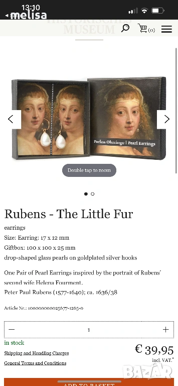 Чифт перлени обеци, вдъхновени от портрета на втората съпруга на Рубенс – Хелена Фуртмент