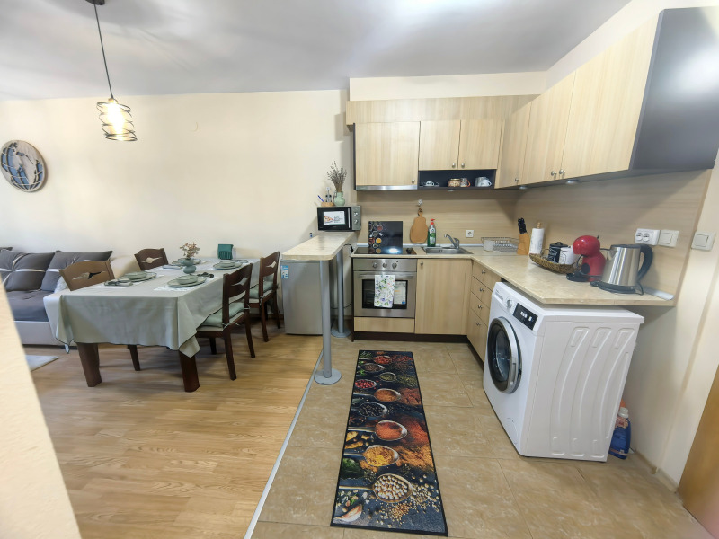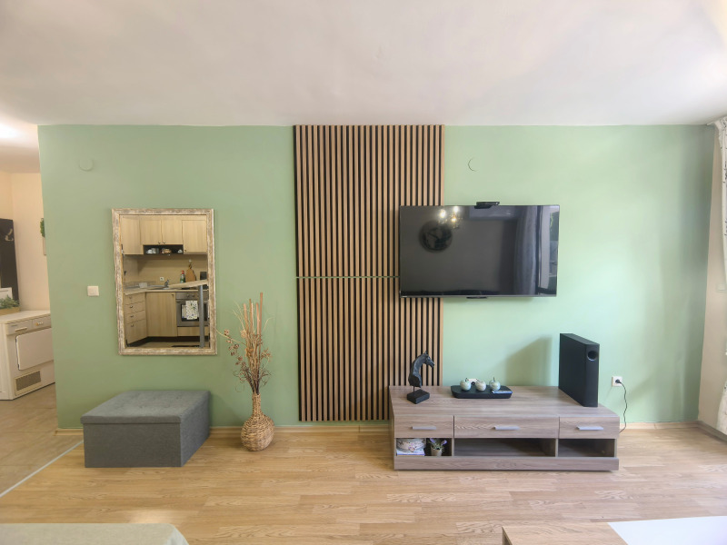 Апартаментът разполага с две стаи- хол с разтегателен диван и кухненски бокс и отделна спалня, както и баня оборудвана с вана. На терасата пред градинката сред чистият въздух и зеленина можете да се отпуснете удобно пиейки кафето или аператива си. За ваше удобство сме подсигурили пералня и отделна сушилня, както и готварска печка с вградена фурна, микровълнова фурна, кафе машина, прибори и посуда... Пълен пакет Цифрова и Интернет!