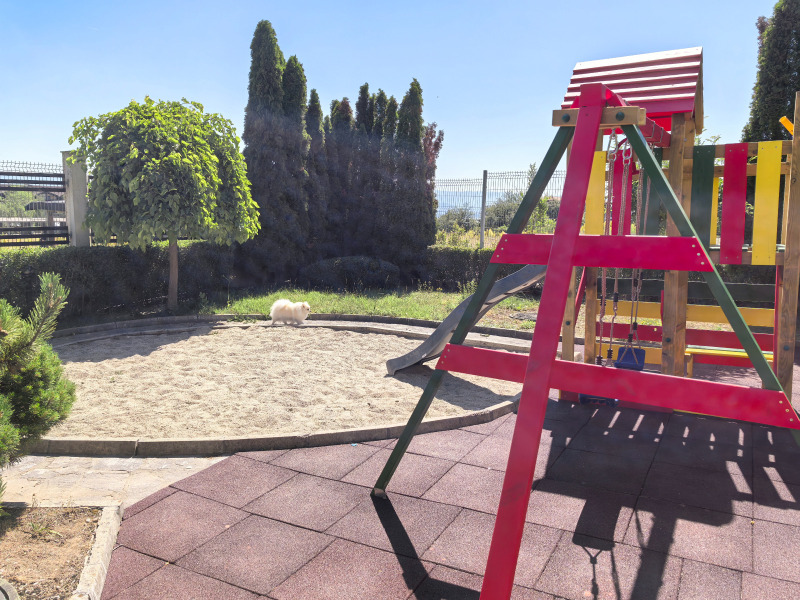 Комплексът разполага с два открити басейна, паркинг, 24 часова охрана с видео наблюдение, детска площадка, сауна, джакузи и прекрасен голям озеленен двор.