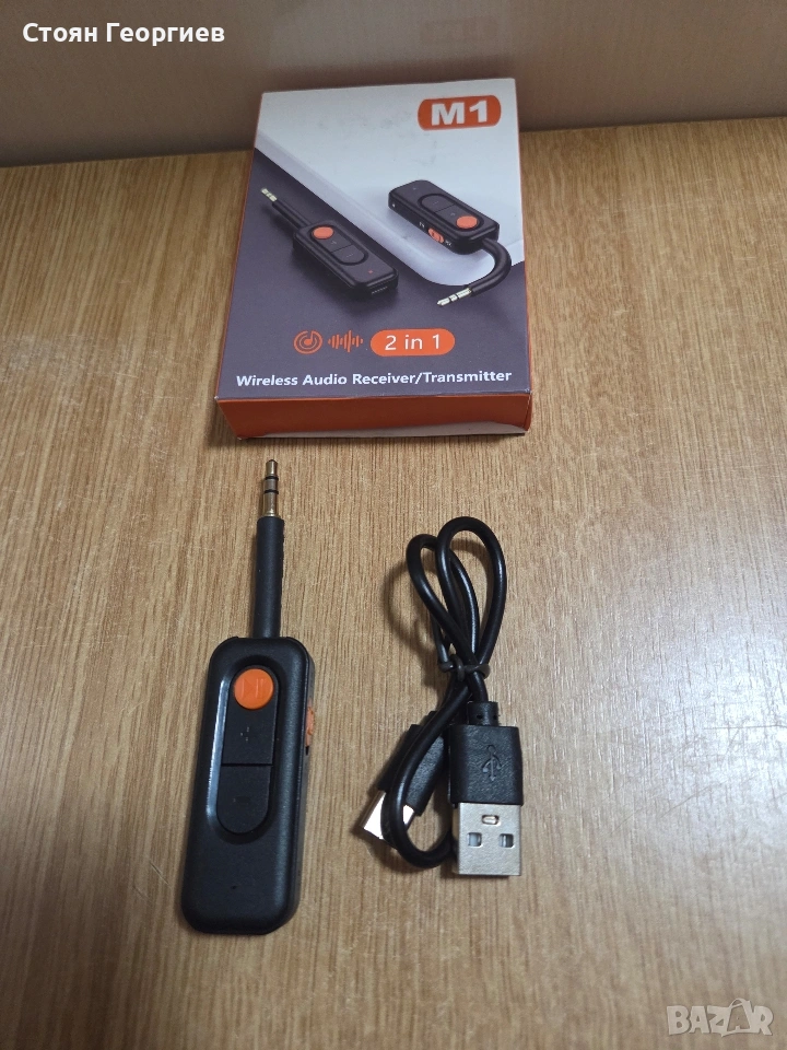 Безжичен аудио приемник/предавател M1 2-в-1. Функция 2-в-1: Може да работи както като предавател, та Безжичен аудио приемник/предавател M1 2-в-1. Функция 2-в-1: Може да работи както като предавател, така и като приемник. Свързаност: Разполага с 3,5 мм AUX стерео изход/вход. Приложение: Подходящ за използване с телевизори, компютри, автомобили, слушалки и домашни стерео системи. Включен аксесоар: В комплекта има кабел за зареждане с USB-A към Micro-USB конектор.