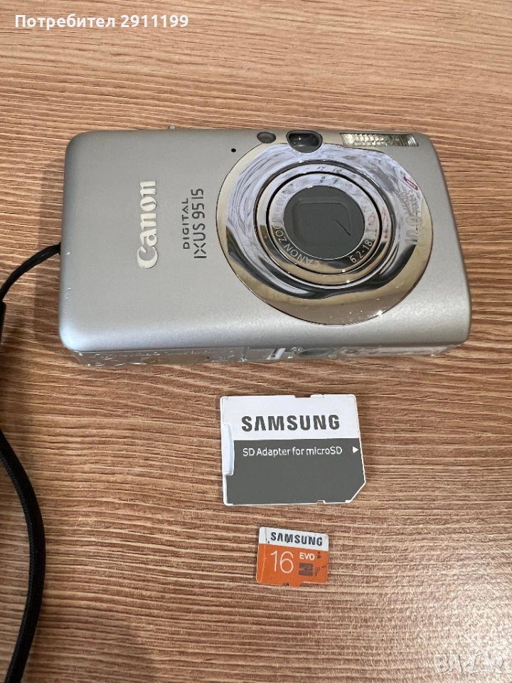 батерията. Подаръци с фотоапарата са microSD карта памет Samsung 16GB с адаптор към SD и нов защитен калъф. Моля вижте снимките