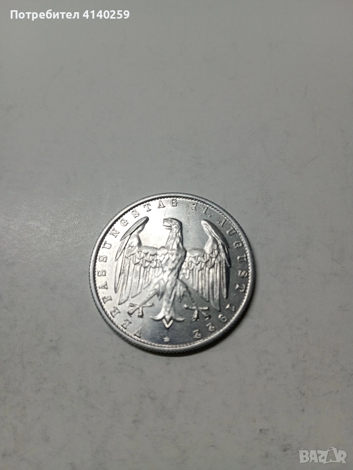 ГЕРМАНИЯ ВАЙМАРСКА РЕПУБЛИКА 3 МАРКИ 1922 Г АЛУМИНИЕВА СЪСТОЯНИЕ ОТЛИЧНО ПОЛУЧАВАТЕ СНИМАНАТА МОНЕТА РАЗГЛЕДАЙТЕ ДРУГИТЕ МИ ОБЯВИ ДА КОМБИНИРАТЕ ДОСТАВКА ЕКОНТ ЗА ВАРНА ЛИЧНО
