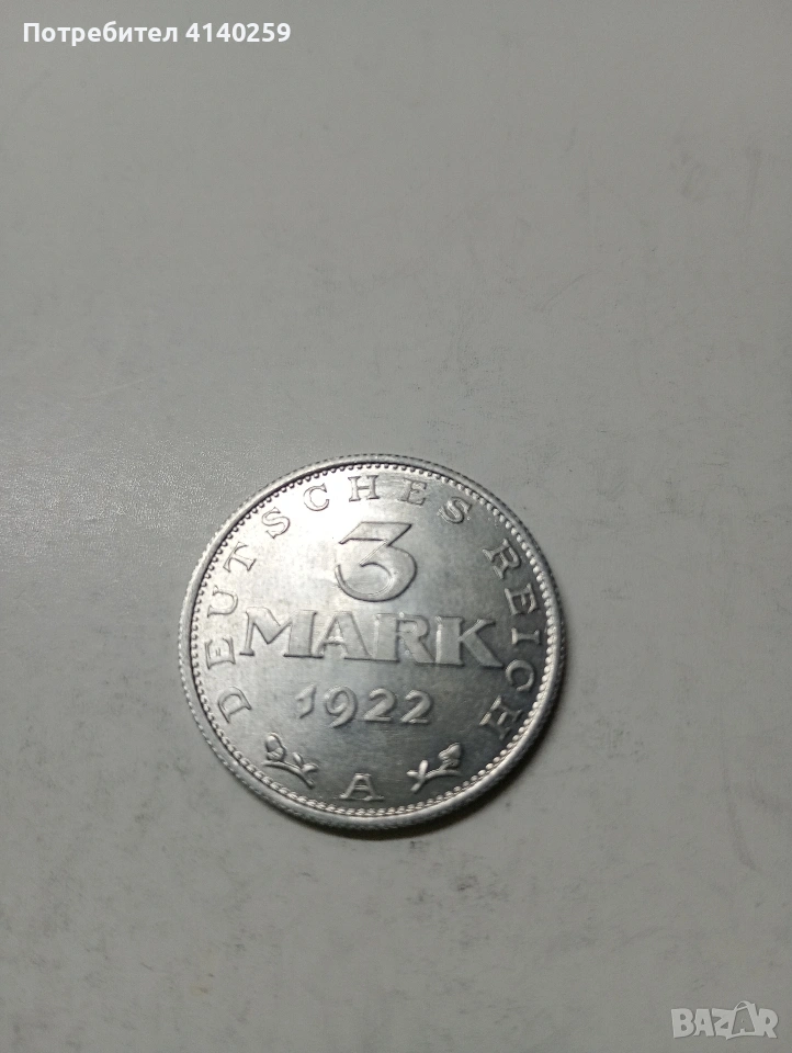 ГЕРМАНИЯ МОНЕТА 3 МАРКИ 1922 Г → Обява 53392611