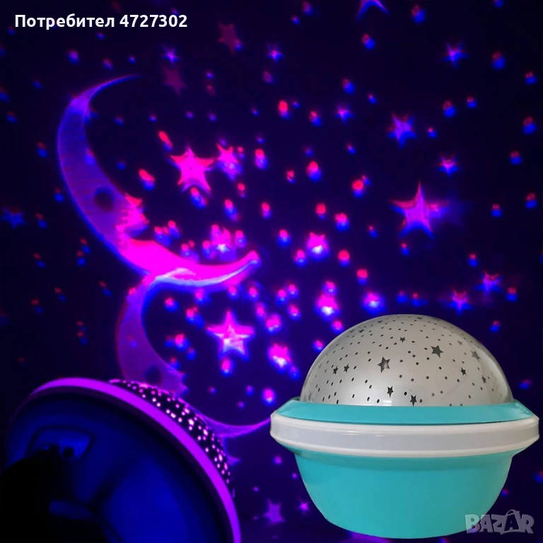 Цветна LED нощна лампа НЛО проектор със звездно небе, звезди и луна за детската стая и спокоен сън