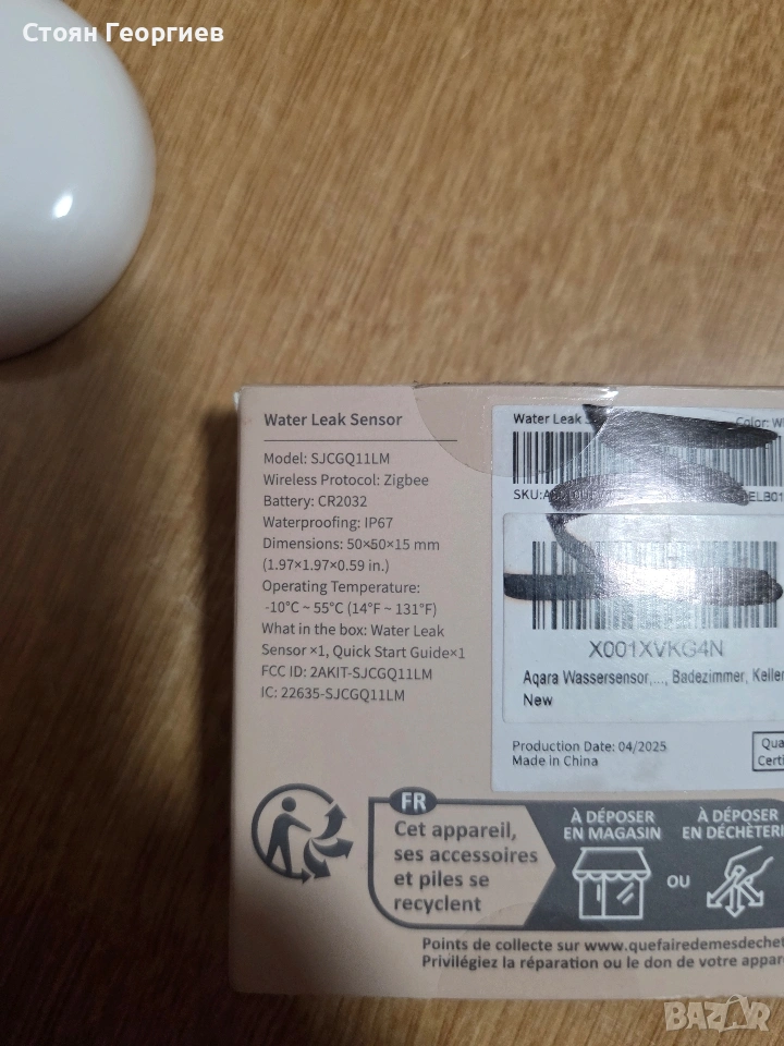 Сензор Aqara Water Leak Sensor Сензор за теч на вода Aqara Water Leak Sensor Производител - Aqara Размер - 50 × 50 × 15 mm Батерия - CR2032 Оперативна влажност - 0 - 95%RH Свързване - Wi-Fi, Zigbee 3.0 Изисква се Aqara Hub Продуктов номер - SJCGQ11LM