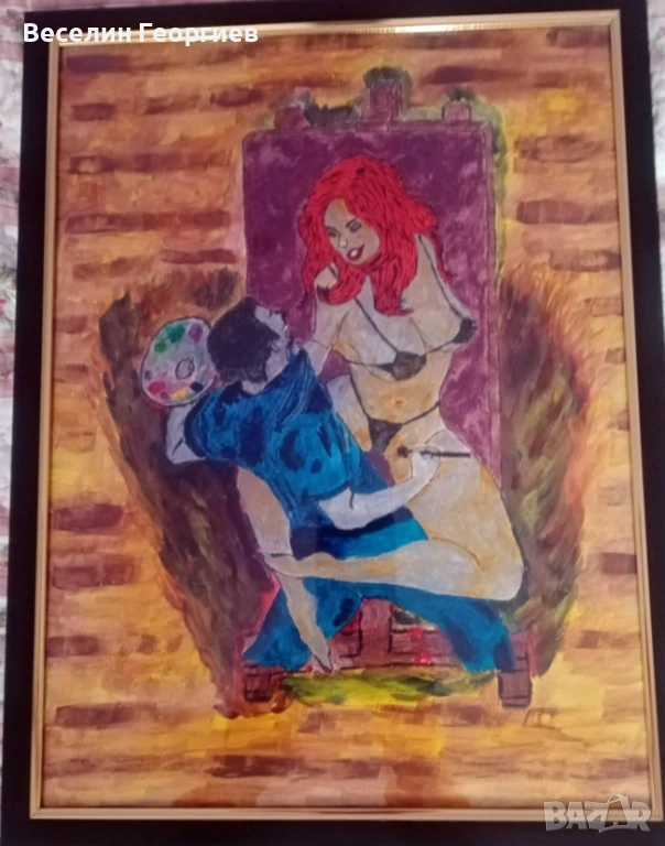 Картината е нарисувана с гваш бои върху картон. Размери 33/43 сантиметра.