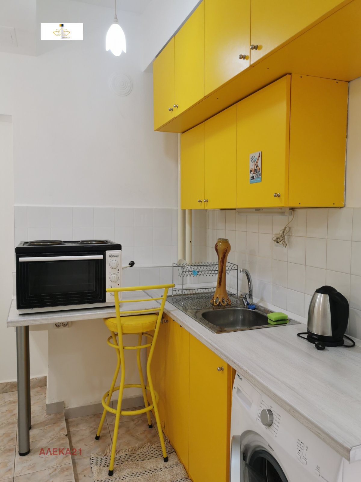 Апартамент в аристократична, масивна сграда с високи тавани в идеалния център на София. Апартаментът е в много добро състояние и е подходящ за отдаване под наем. Разпределение:кухня, дневна, спалня, баня с тоалетна, два балкона. Към апартамента има мазе, таван. На разположение на живущите е и вътрешен двор. Сградата е без асансьор.