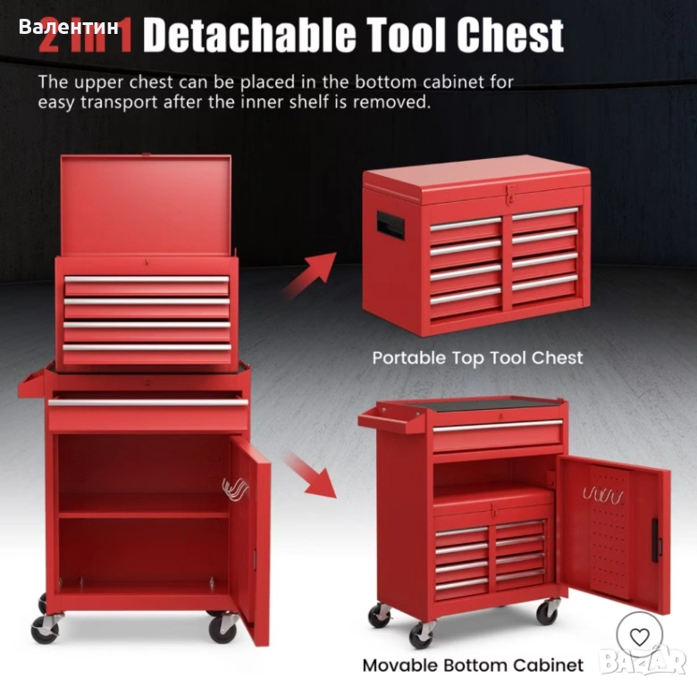 Количка 2 в 1 с кутия за инструменти COSTWAY → Обява 53393078