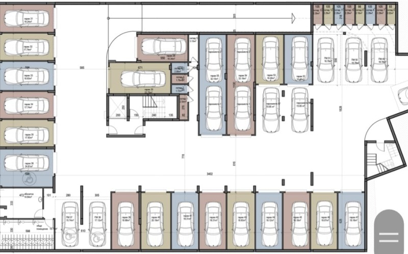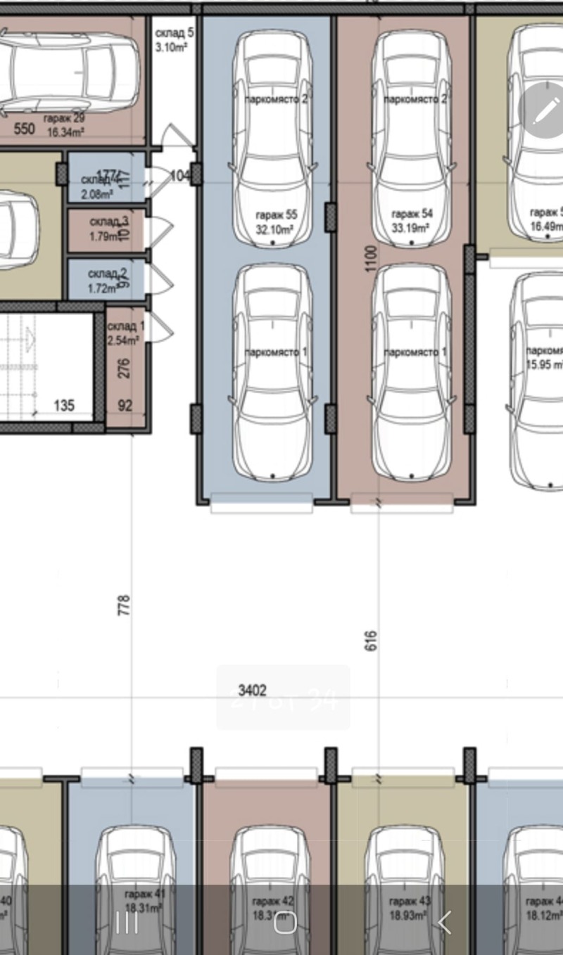 Гараж 55 , разположен на кота -3,00 м. (подземен гараж) - застроена площ 34,03 кв.м., - 60 000 евро с ДДС.