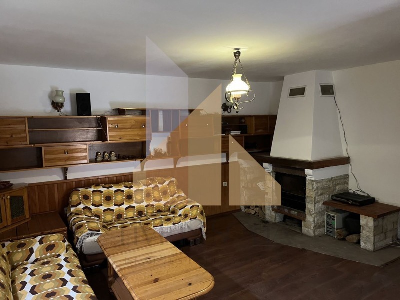 - 🧱 Етаж 1: отворена дневна зона с хол и камина, трапезария и кухня, една баня с тоалетна.