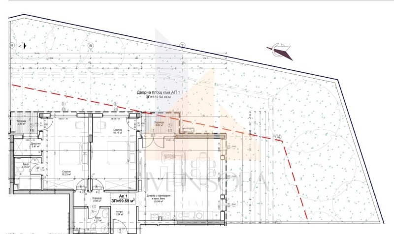 Live In Sofia Ви представя ЕКСКЛУЗИВНА оферта LS-92. Тристаен апартамент (112,82 кв.м.) с двор (182,94 кв.м.) и веранди (6,87 кв.м.) и мазе в нова жилищна сграда, разположена в тих и перспективен район кв. Враждебна, София.