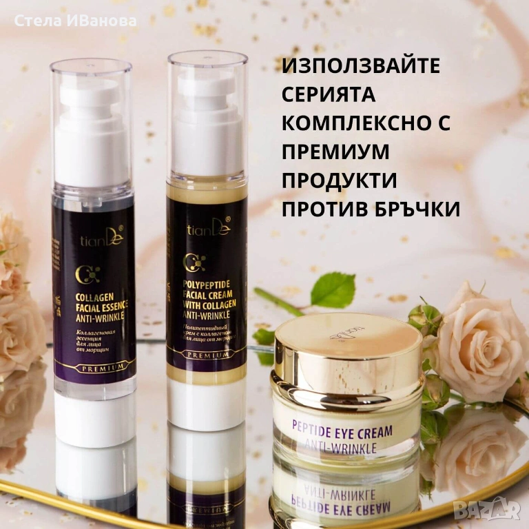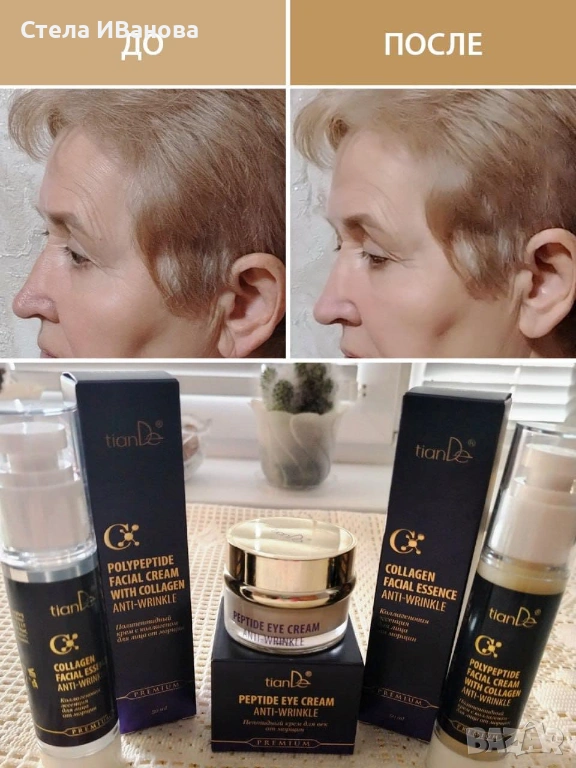 Серията, която има подобен на ботокс ефект с колаген, пептиди и хиалуронова киселина. Бързи резултати!!
