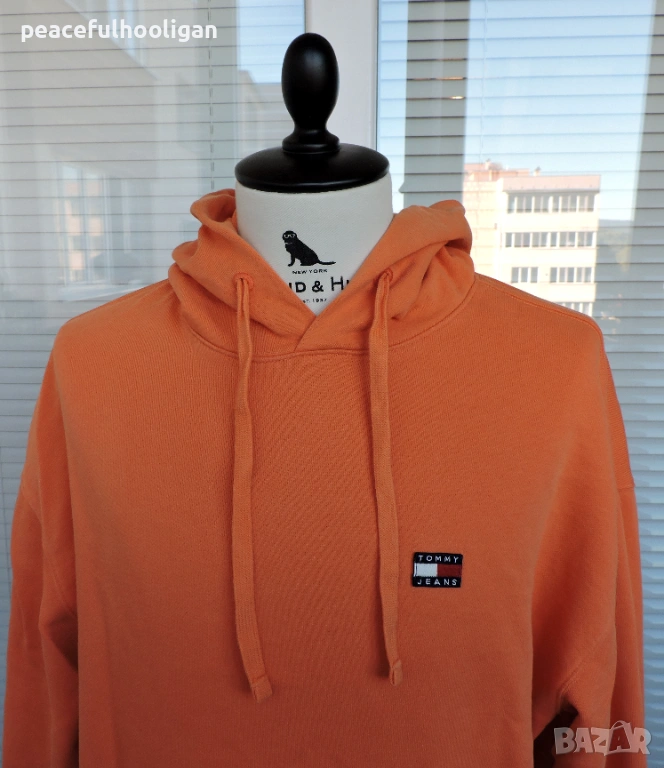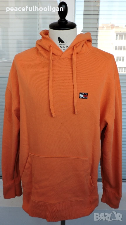 Tommy Hilfiger Tommy Jeans мъжки оранжев памучен суичър с качулка размер L → Обява 53393776