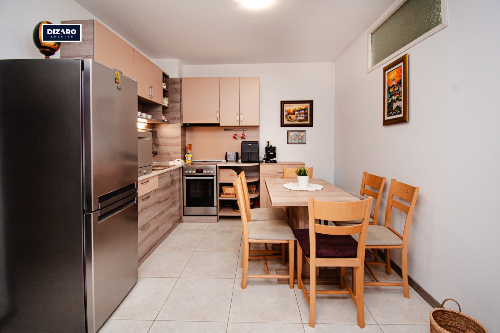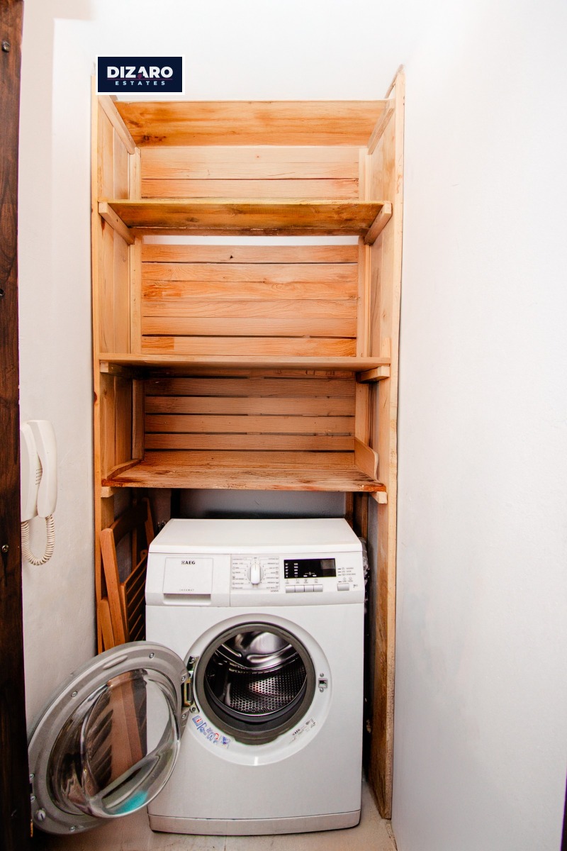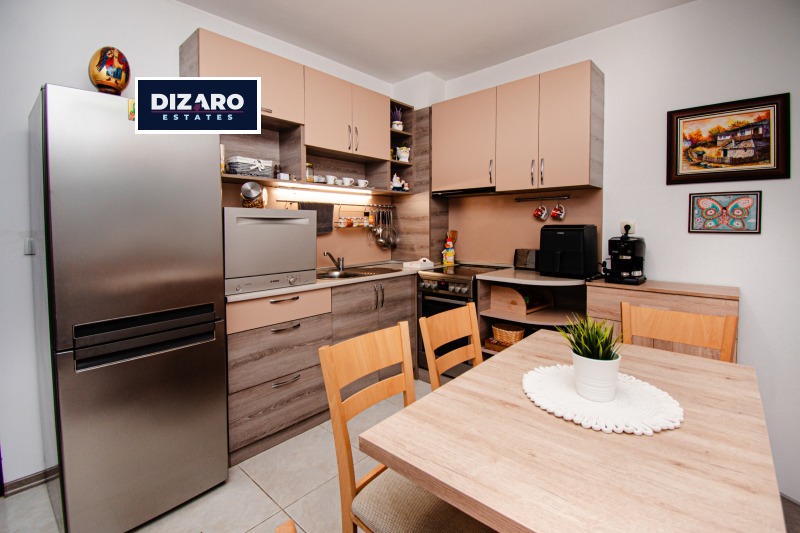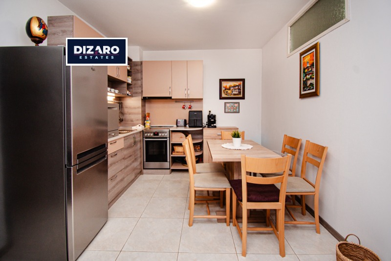 Апартаментът е със ЗП 58,93 кв.м. Изложението му е запад и североизток. Отоплението е на ТЕЦ, жилището разполага и с климатик в хола. Обзавеждането на апартамента е стилно и изключително запазено. Кухнята е напълно оборудвана, за допълнително удобство, жилището разполага и с бойлер.