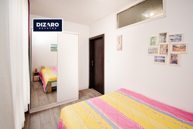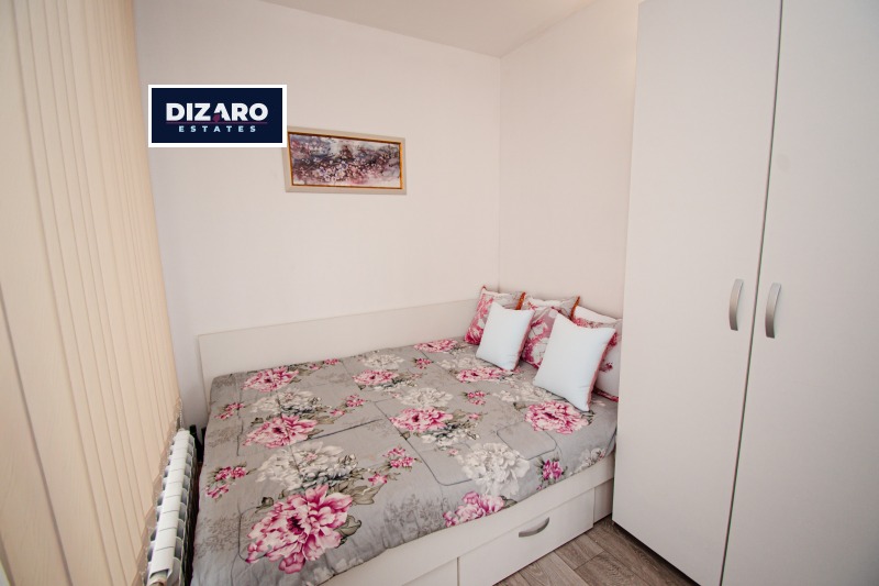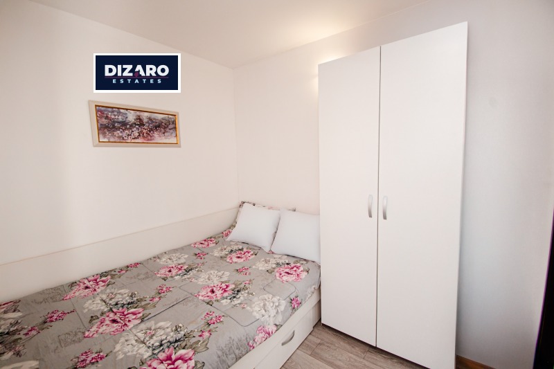 Дизаро Естейтс предлага за продажба маломерен тристаен апартамент с функционално разпределение, състоящ се от хол с всекидневна и кухня, две спални, антре, баня с тоалетна, отделно мокро помещение и тераса. Разположен е в нова сграда с контролиран достъп и отлично поддържани общи части.