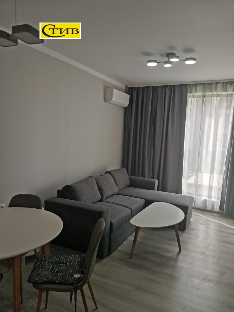ПЪРВИ НАЕМАТЕЛИ! Наем 500 евро с включена входна такса за комплекса! За ценители на удобство и максимален комфорт, агенция Стив предлага под наем двустаен луксозно обзаведен апартамент в новия затворен комплекс Резиденшъл парк , на метри от парк Лаута, община Тракия, хипермаркети, училища, детски градини. Комплексът разполага със собствен търговски център, спортна зона, детски площадки, сиситема за видеонаблюдение и контрол на достъпа. Жилището е с изложение югозапад, на първи жилищен етаж и се състои от входно антре, просторен хол с бокс, самостоятелна спалня, тераса с излаз от двете стаи и баня и тоалетна. Обзаведено с всичко необходимо за едно домакинство. Агенцията разполога с ключ за огледи.