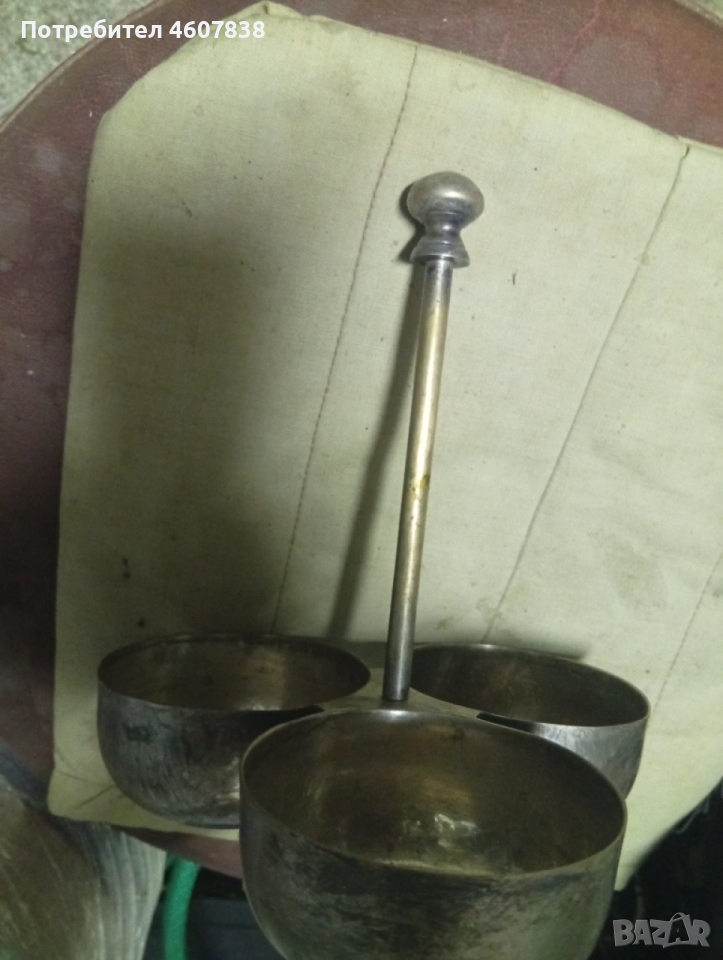 Стойка за подправки или поднос за алкохол посребрен месинг. Дръжката се отвива.