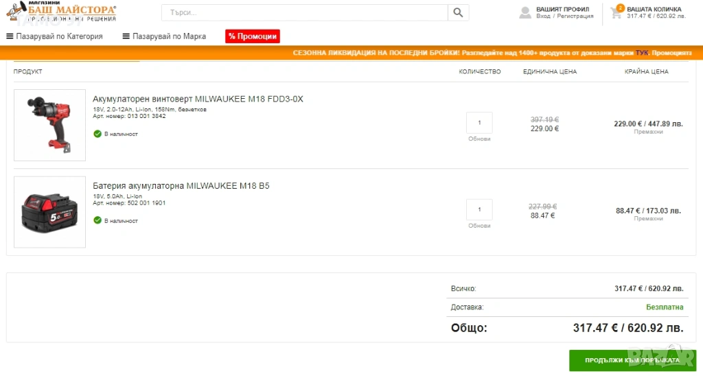 Магазинската цена е: 317.47евро