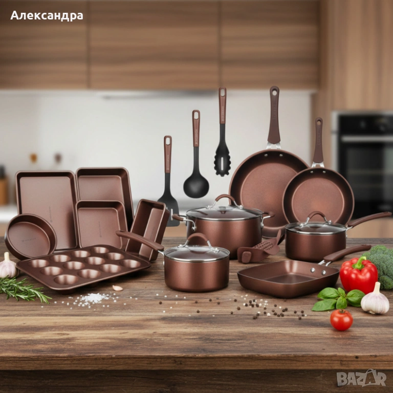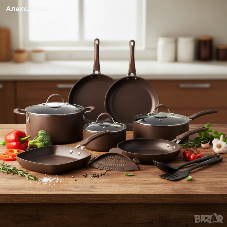 Комплект 20 части Edenberg EB-5655 от кован алуминий — незалепващо мраморно покритие за равномерно г → Обява 53394541