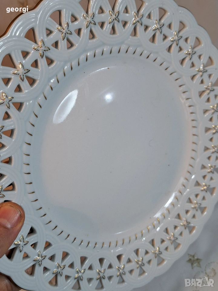немска ретро декоративна ажурна порцеланова чиния за стена Ludwigsburg с позлата 33/1 → Обява 53394635