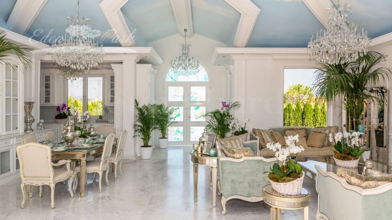Вилата е бутиково обзаведена с индивидуално изработени мебели, авторски витражи и стенописи, а интериорът е решен с висок клас естествени материали и елегантни дизайнерски акценти. Резултатът е изискан дом с характер, съчетаващ уют, стил и престиж.