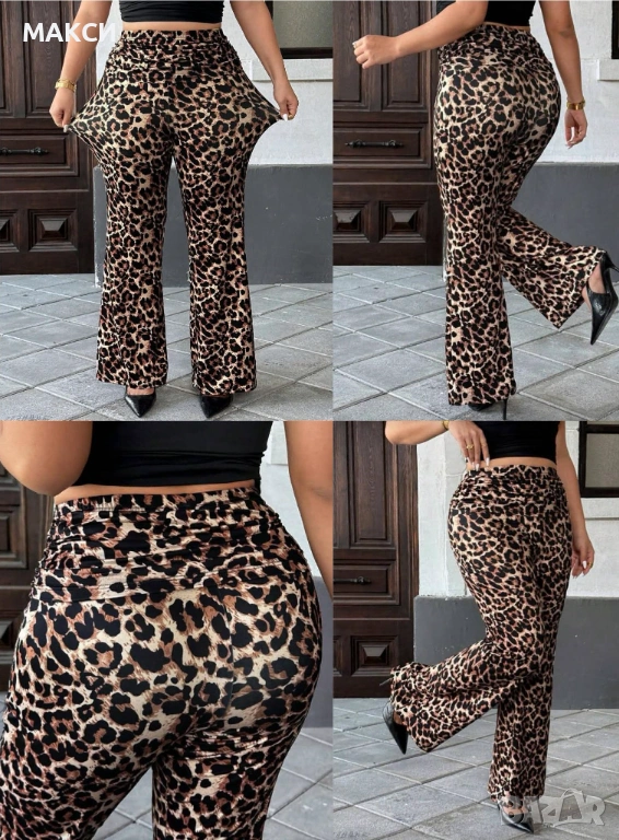 Макси модерен силно еластичен клин-панталон Чарлстон с ефектна платка на висока талия в леопардов де → Обява 53394778