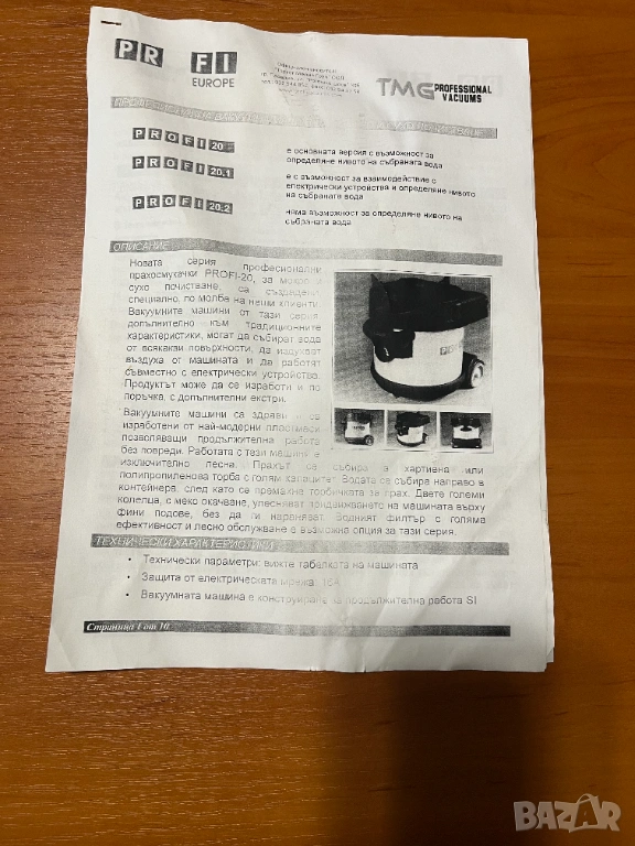Професионална прахосмукачка за почистване на големи площи, като офиси, хотели, училища, бизнес сгради, но и за дома, малък офис или къща за гости и др.. Има металната конструкция. Благодарение на гумената лента по периметъра на прахосмукачката и гумените колела, прахосмукачката Profi 20.2 защитава мебилите и пода от нараняване и допринася за безшумно придвижване на прахосмукачката. Двигателят е защитен от прегряване. Захранващият кабел е с дължина 13,5 м.Има режим "издухване" Прахосмукачката може да работи с торба и с воден филтър. В комплекта има и резервен филтър. Прахосмукачката е ползвана два пъти без аксесоарите, само с маркуча. Предлага се в оригиналната опаковка и ръководство за ползване на фирмата доставчик. Опаковката е с размери в-46 см, ш-40 см, д-60 см.