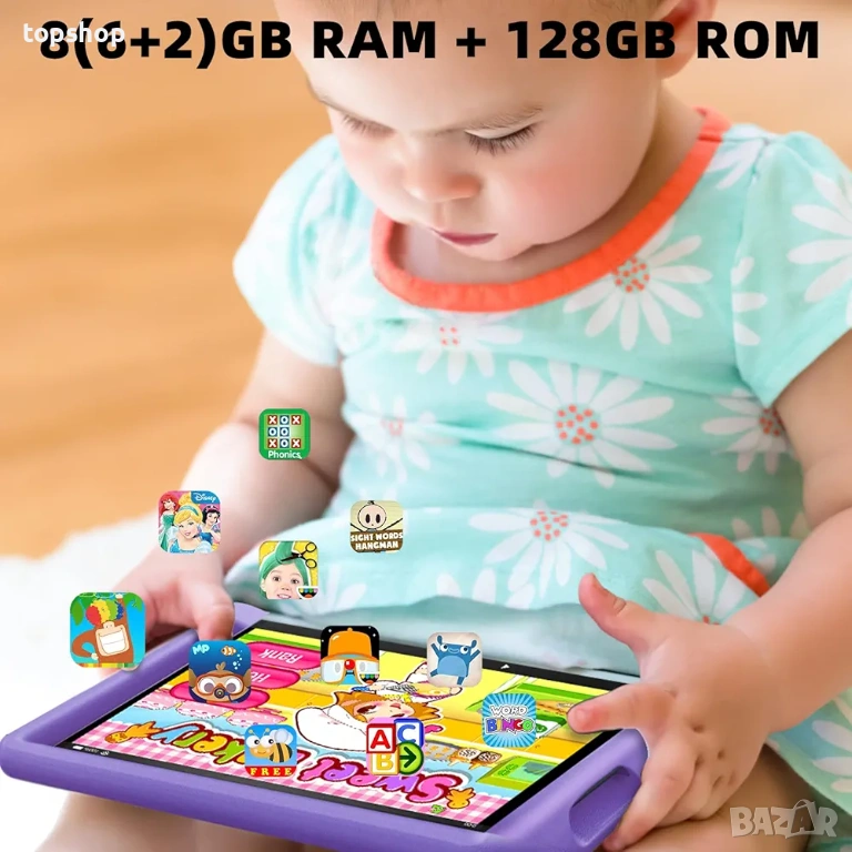 Много място за игри Със своите 128GB памет таблетът може да побере хиляди снимки песни и десетки тежки игри и образователни приложения.