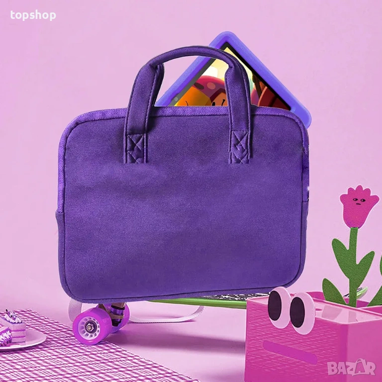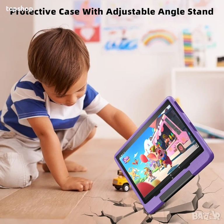 Максимална защита Включва лилав удароустойчив калъф който предпазва устройството при изпускане или удари. На гърба има вградена стойка за удобно гледане на филмчета без ръце.