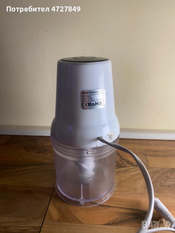 Продавам компактен мини чопър на марката Bravissimo. Идеален за бързо рязане и кълцане на лук, чесън, ядки, билки или приготвяне на малки дози сосове и пастети.