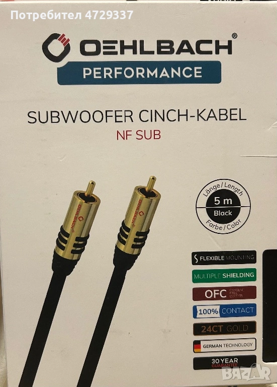 Кабел за субуфер 5 м Oehlbach Performance NF sub → Обява 53395255